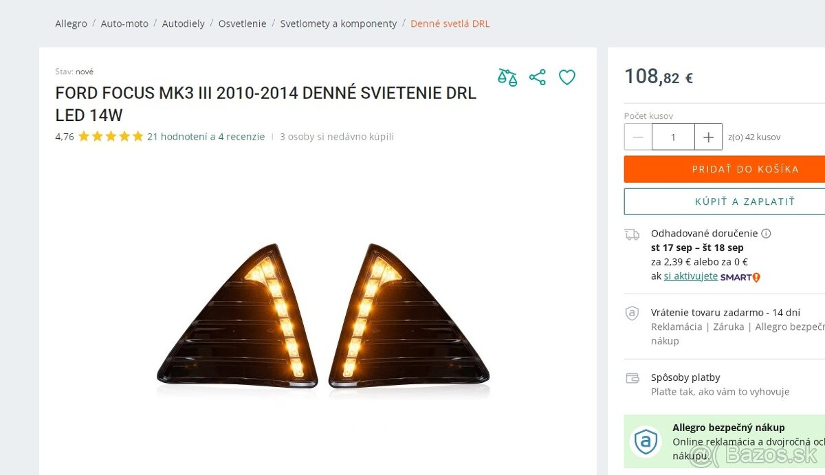 FORD FOCUS MK3 III 2010-2014 DENNÉ SVIETENIE DRL LED 14W