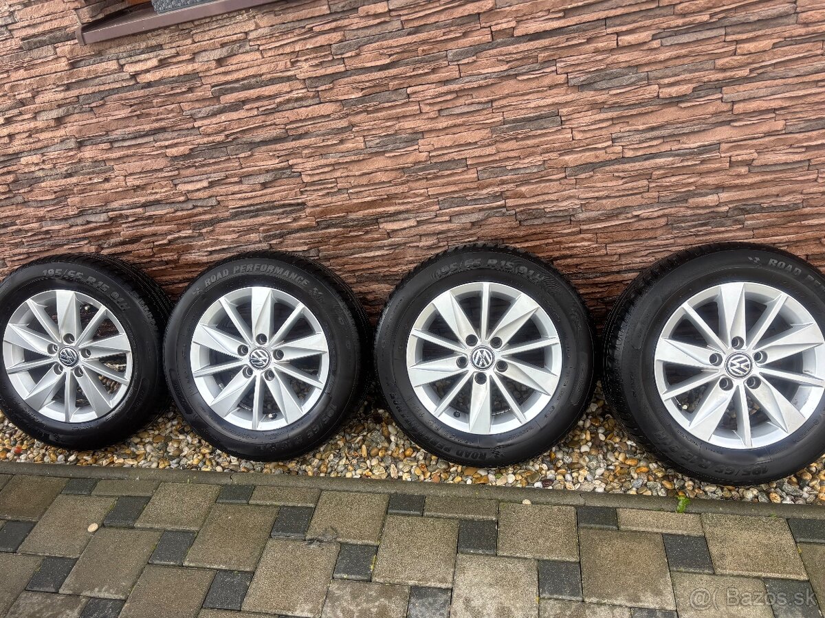 Predám originálne alu disky VW r15 + letné pneu 195/65 r15, dezén ešte cca 80%.