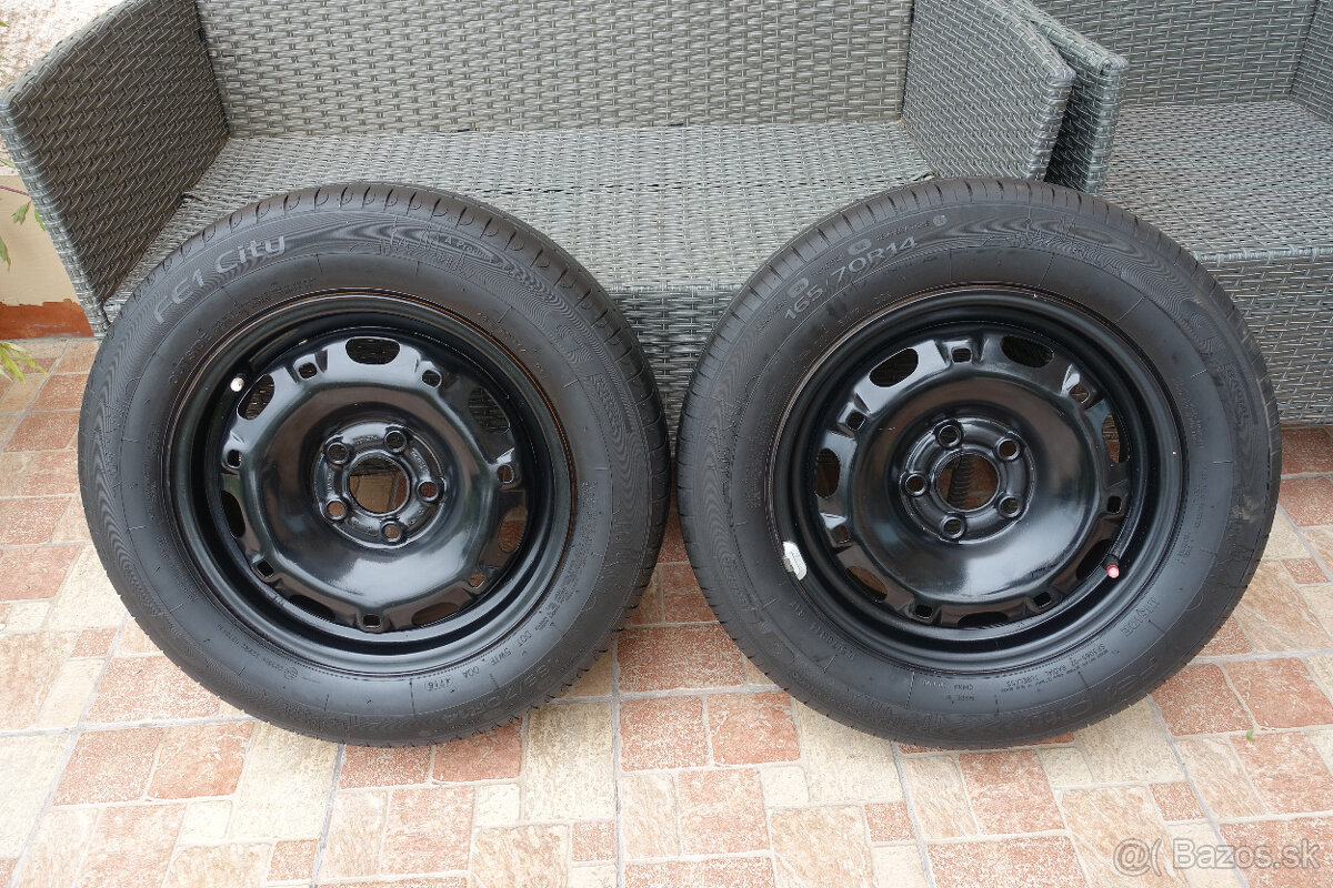 Predám 2 ks kompletných kolies na diskoch 5jx14 ET35 a pneumatikách FE1 City GT Radial 165/70R14.