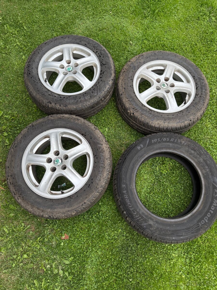 Predám jednu sezónu používané pneumatiky na jednotkovú Octaviu , bohužiaľ len na 3 diskoch , jeden disk po búračke nepoužiteľný (rozmery viď foto) Cena možná aj dohodou