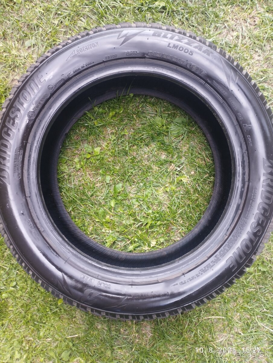Predam Zimne pneumatiky Bridgestone 215/55 R17 4ks + Letne pneumatiky Continental 215/55 r17 4ks, len spolu sada 8ks, jazdene na Suzuki Vitara 2019, spolu cena 140e (prípadne dohoda).