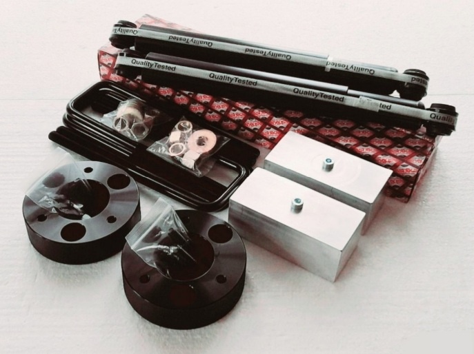 Podvozková sada na zvýšení podvozku Lift Kit +65mm Nissan Navara D40 2005+ (přední podložky tlumiče jdou krátce použité, 100% stav)...