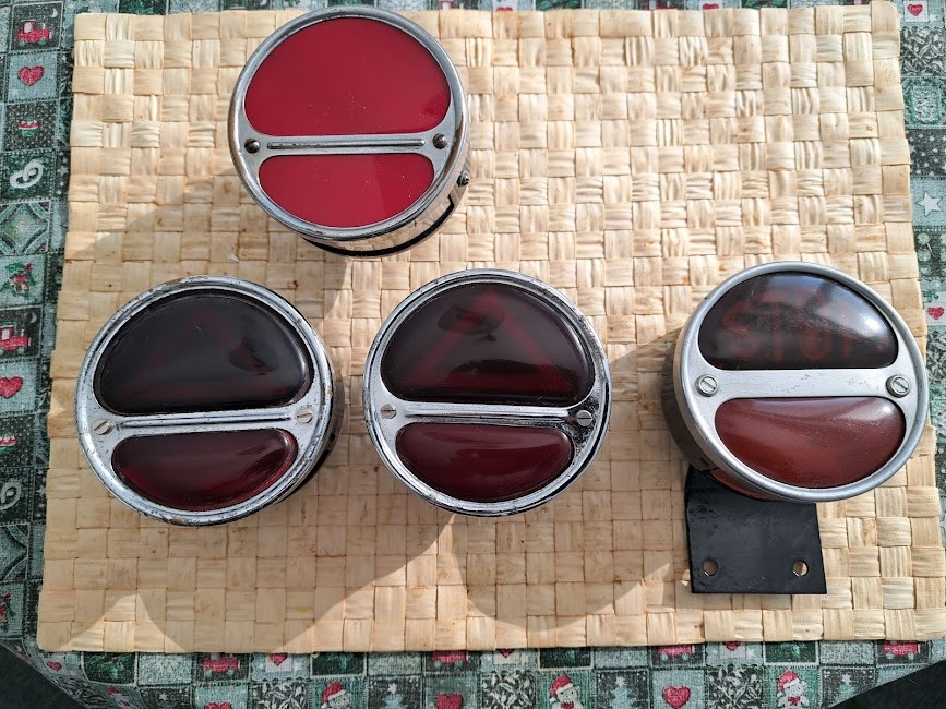 Prodám originál původní koncové lampy v top stavu. Aero, Wikov, Škoda, Praga, Tatra a jiné značky. Koncová lampa s držákem vpravo na fotce je už prodaná.