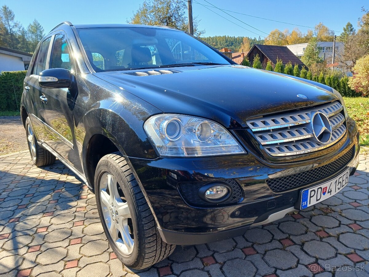 Predam Mercedes ML 320 CDI,6V, Vykon 164 kW/225 koni,Rok vyroby 2005, Najazdene 198620 km,Cierna metaliza, Vybava:Trojzonova klimatizacia, Multifunkcny kozeny nadstavitelny volant, Tempomat, Vyhrievane sedacky predne, El.okna, El.sklapatelne, nadstavitelne zrkadla, ABS, ESP, CD Radio, El.nadstavitelne predne sedacky s pamätou,El.otvaranie dv.kufra, Xenonove svetla, 19 ky Hlinikove disky, Zimne gumy, Tazne odnimatelne zariadenie, Sedacky brusena koza,Stresne okno El.,Centralne zamykanie na DO, 2 kluce na DO,, Dazdovy senzor, Parkovacie senzory v predu aj v zadu, Predne hmlovky, Garazovane,Nebolo havarovane,Servisna knizka, Super stav,