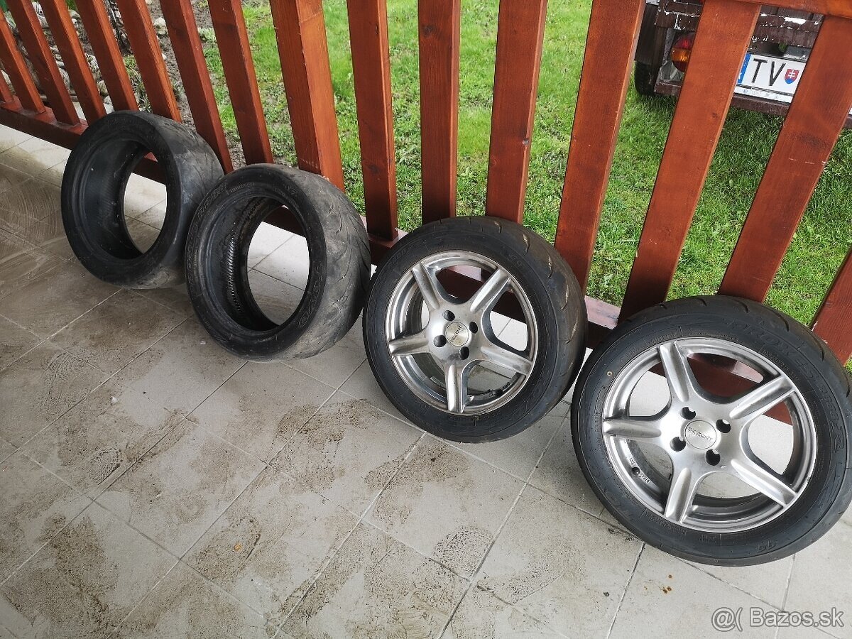 5x100 R15 Audi 195/50R15 - [22.12. 2025]Predám ľahké audi kolesa s pneu Nankang semi slick NS-2R 195/50r15 pneu majú 2 5mm a 2 6.5 mm vhodné na slalom ,kopce ,šprint ,okruh …