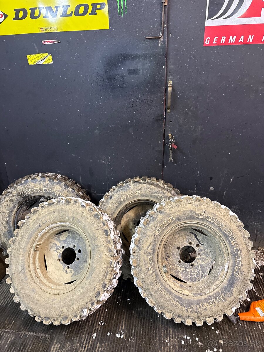 Zdravím, predám maxi cross Pirelli Scorpion S/T 215/80 R15 na vystužených diskoch. Disko nie sú žiadne domazvárance. Sú to originál. Predám iba v celku. Boli obuté na Suzuki Samurai.