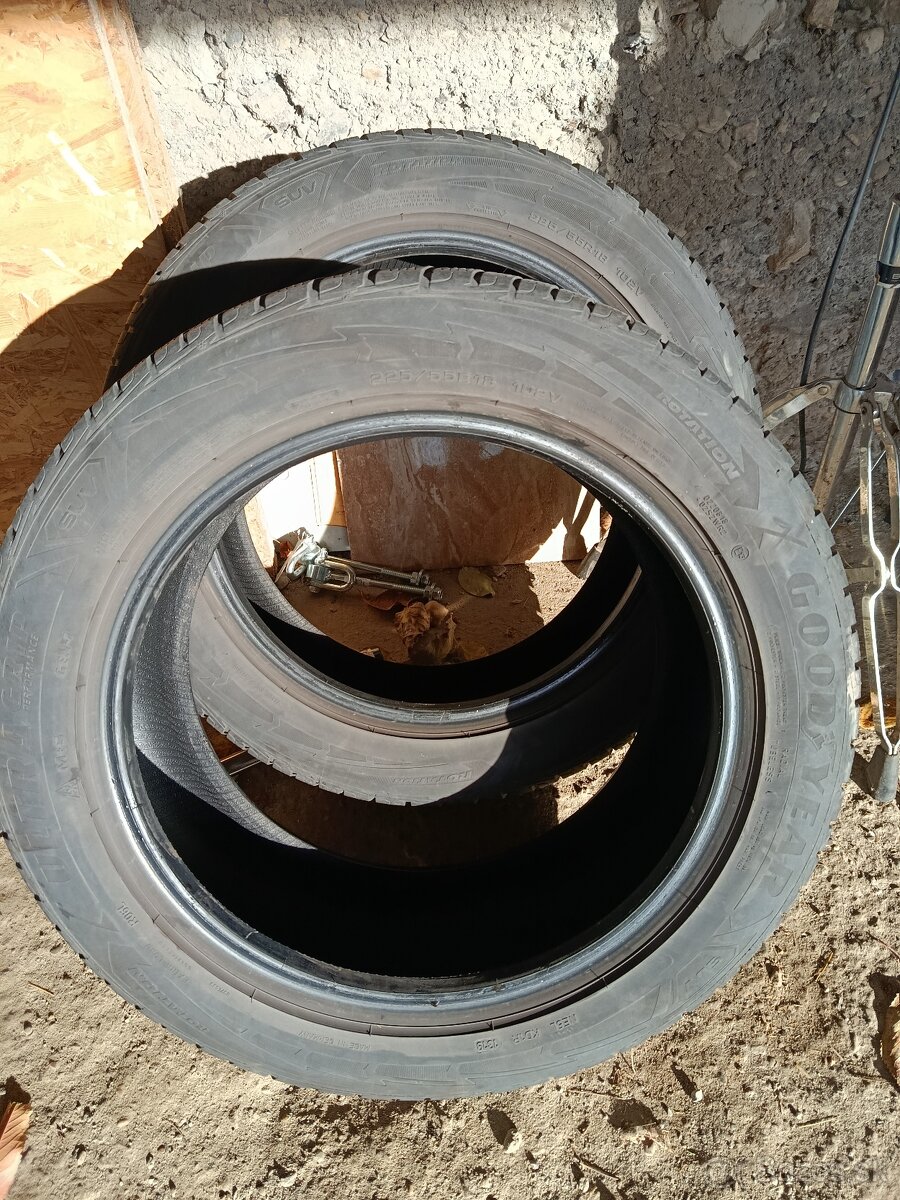 Predám 2x pneumatiky Goodyear 225/55r18 dezén cca5-6mm rok výroby 2019 len osobný odber cena 50€