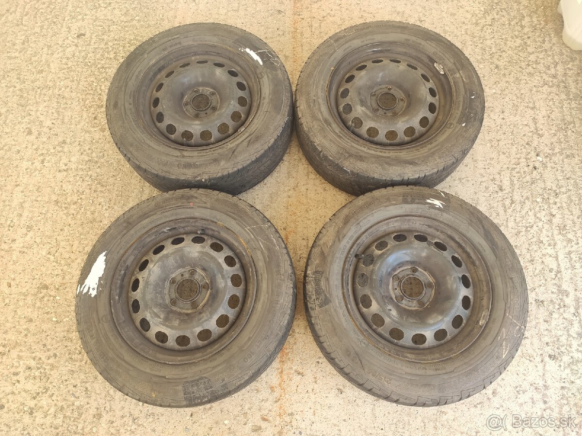 Predám letnú sadu kolies, oceľové disky 5x108, 7Jx16, pneumatiky Continental ContiVanContact 100, rozmer 215/65 R16, DOT 01/20, Dezén: 7mm