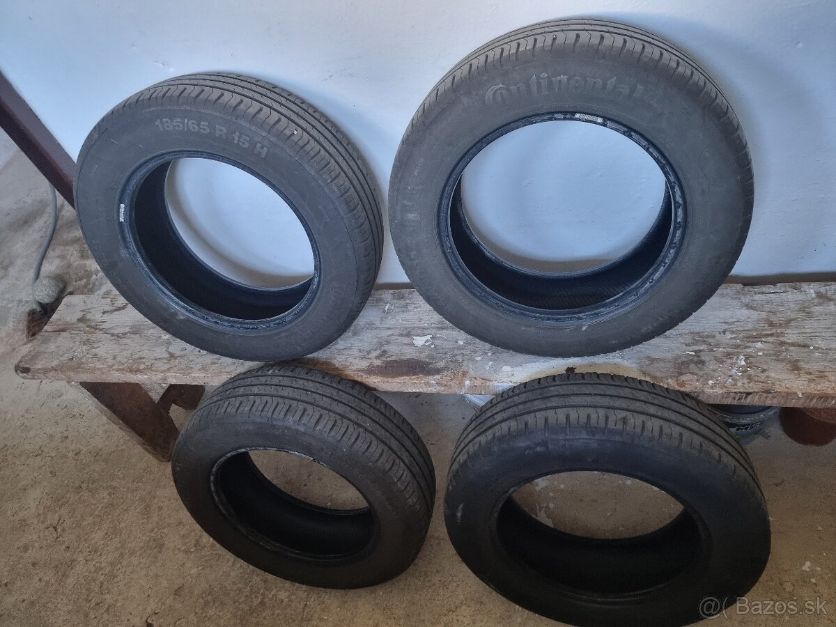 Predám letné pneumatiky Continental, rozmer 185x65 r15 88H, Majú už 10 rokov, veľmi málo jazdené.