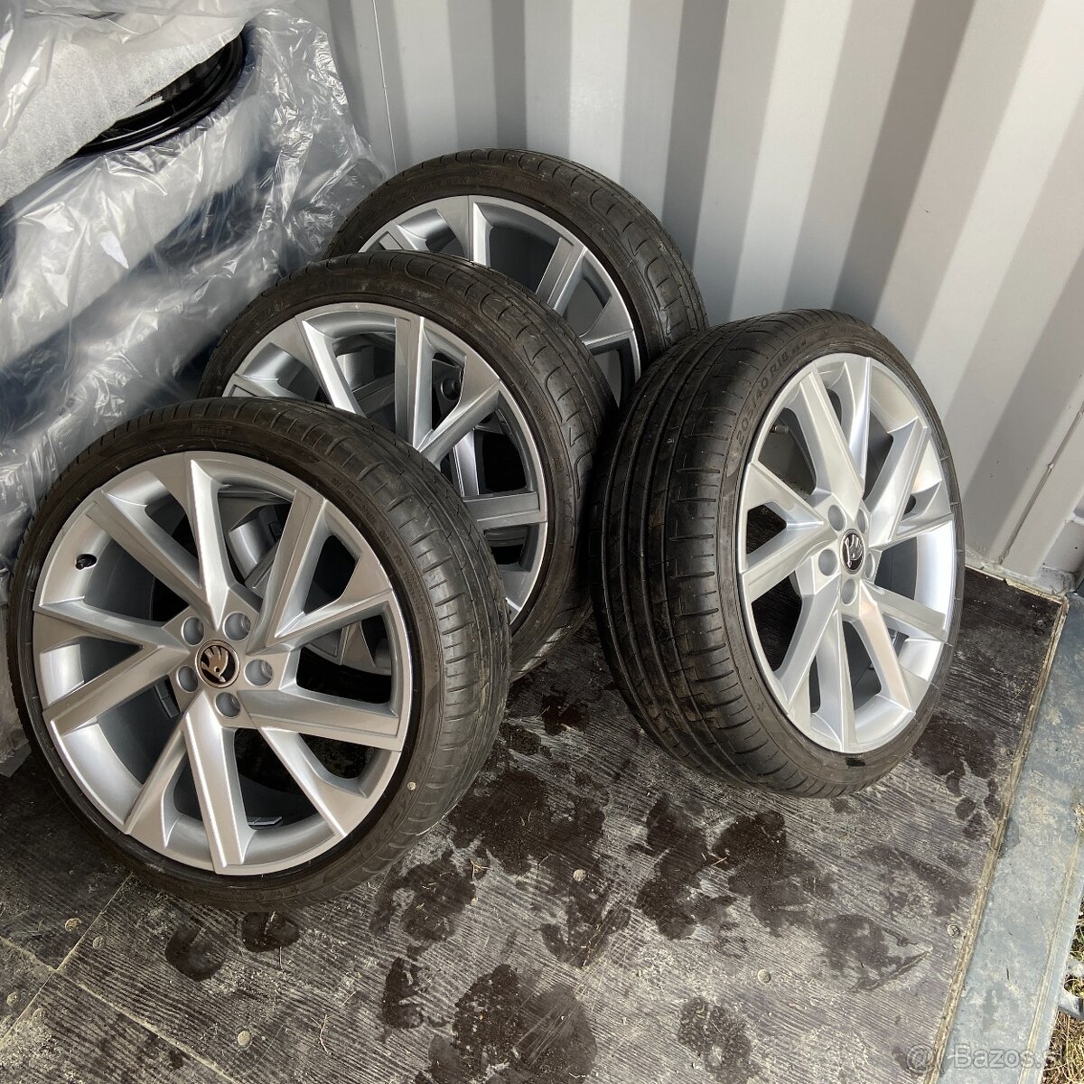 Nové disky bez oděrek a použité pneu (disky jsou špinavé od nazouvání)
