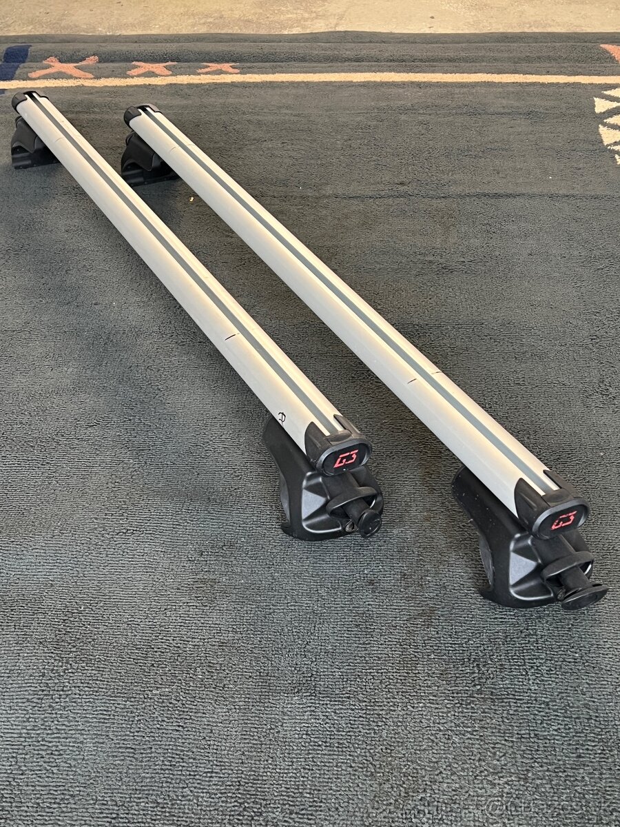 Predám strešné nosiče G3 Open na Audi A4 Avant. Nosiče sa montujú na strešné lyžiny. Boli namontované na modely B7, ale mali by pasovať aj na iné modely A4 od 1995 - 2007. Rozmer tyčí 53x27mm.