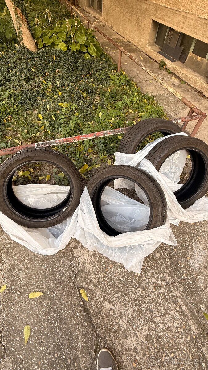 Predám takmer nové letné pneumatiky Goodyear EfficientGrip Performance 205/45 R17 88V s nájazdom 7600 km. Jazdené od 6/2025. Pneumatiky vyrobené v 02/2023, DOT 0823.