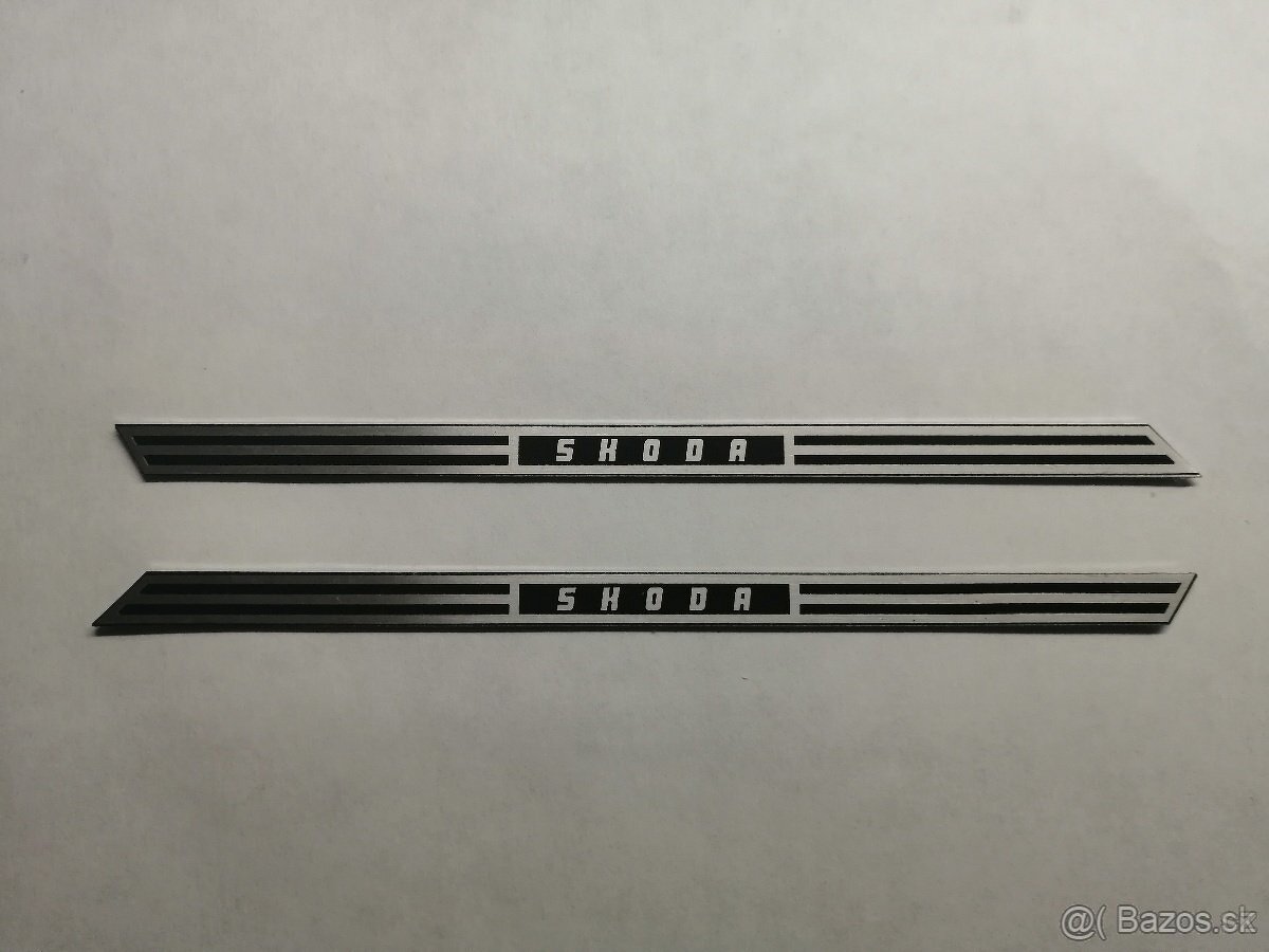 Štítky (pár levý+pravý) do větrací mřížky C sloupku na Škoda 105-136 Export.Veterán,retro.