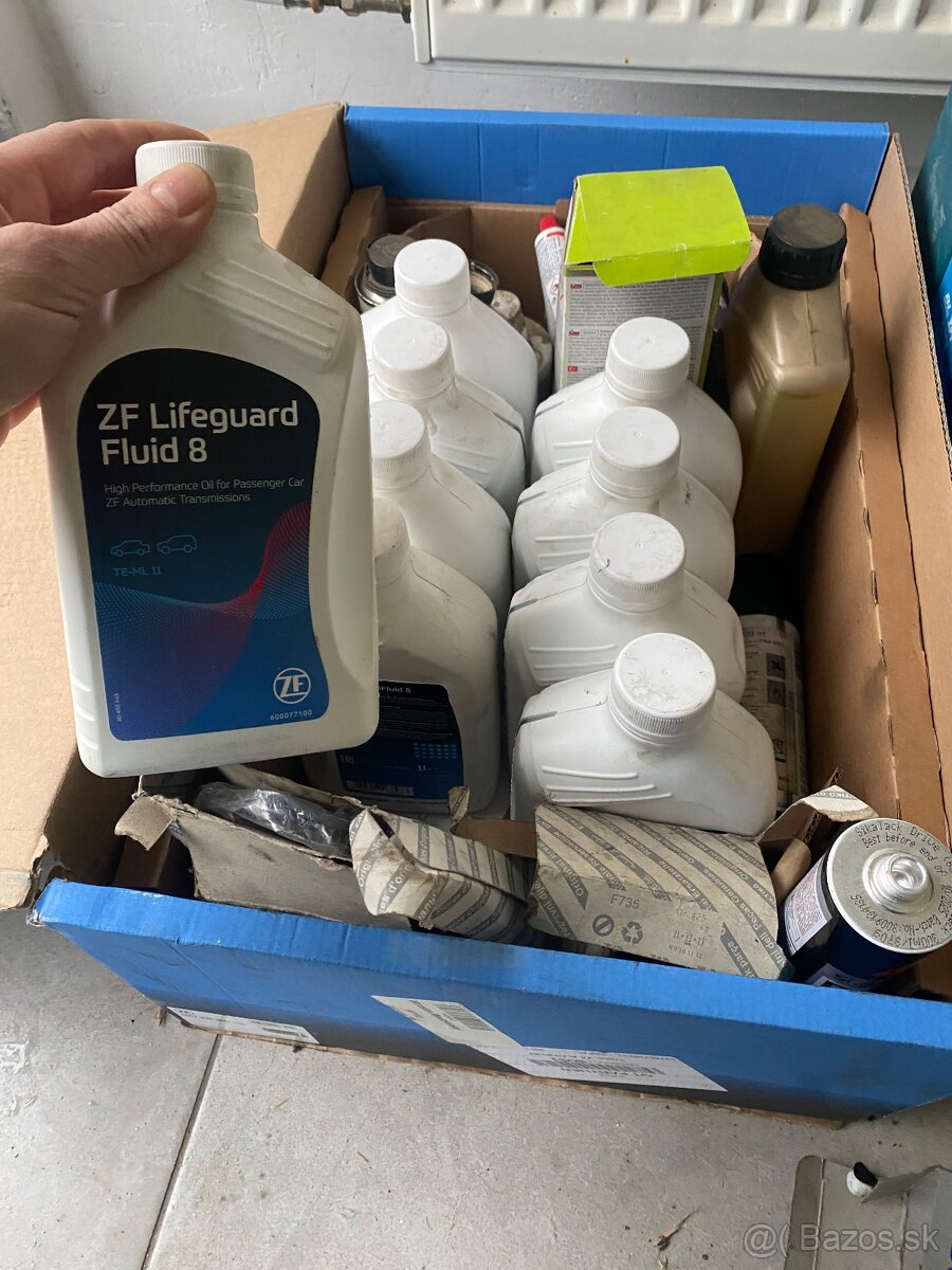 Olej do automatickej prevodovky ZF Fluid life guard 8 original olej bmw . Cena je za vsetko spolu je tam 9 litrov oleja po 90 euro za vsetko , co je polovica s ceny s internetu.