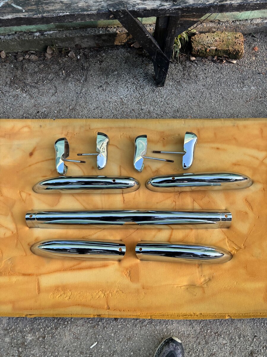 Predam narazniky na skoda octaviu feliciu novo nachromovane. Veľmi pekná sada diely mali minimum hrdze .Vsetky zavity su po chromovani prerezane nachystane na montaz Sada obsahuje 4x slzy 2 zadne kraje 1x stred 2 x predne narazniky (moznost vymeny za vasu staru sadu kompletnu/ nekompletnu 100€ az 200€ dole z ceny podla stavu) veteran podobne ako spartak. zadne kraje maju novy typ uchytu. novy uchyt je blizsie k stredu. Mam aj stary typ uchytenie blizsie ku krajom ( rovnako ako na prednych naraznikoch)