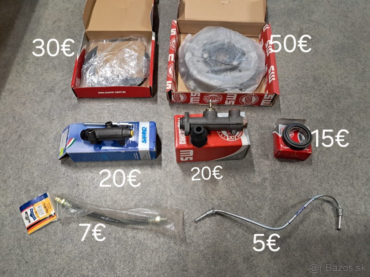 Pritlačny tanier, lamela, lozisko, spojkova hadička, spojková trubka. Hlavny spojkovy valec, pomocny spojkovt valec
