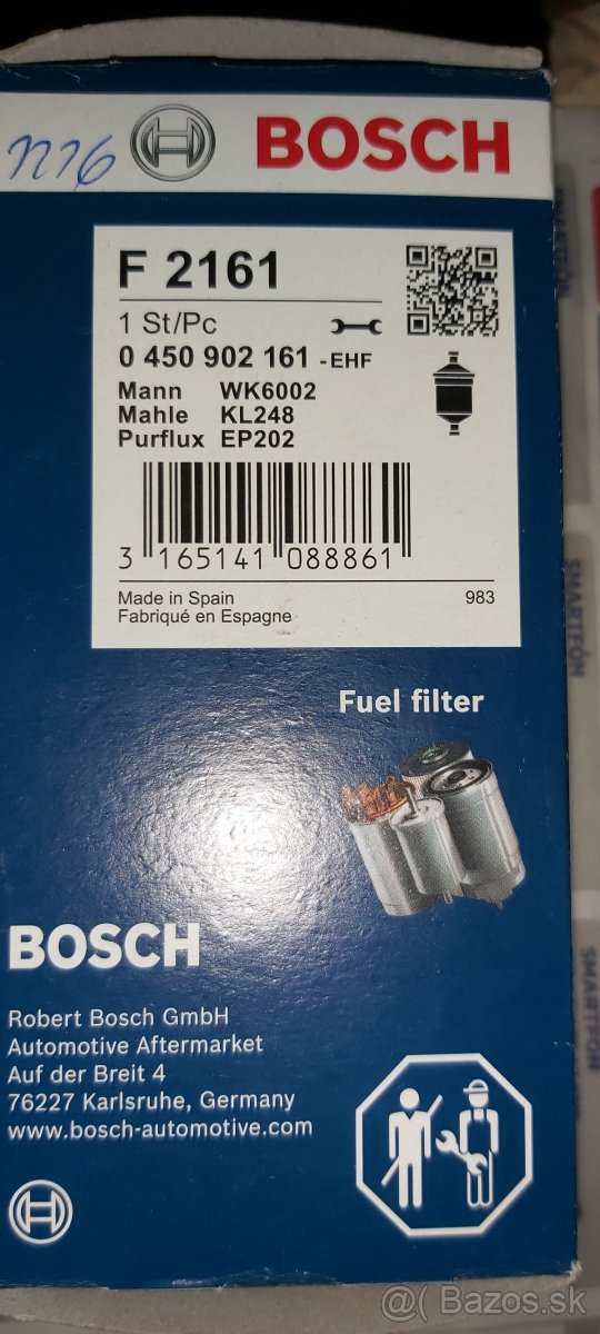 Predám palivový filter 7701475229 Master/Trafic - [8.2. 2026]Dobrý deň. Predám 3 ks originálny palivový filter (OEM 7701475229) na Master/Trafic (alebo Opel Vivaro/Movano) motory G9U, F9Q, M9R. Cena 9 €/ks. Prosím volať po 17 hod. (Po-Pia, alebo cez celý víkend) na SMS nereagujem. Peter