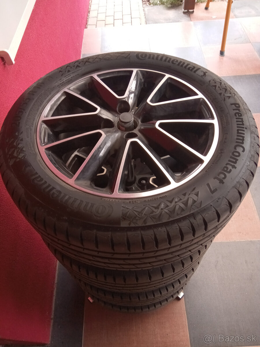 Letné pneumatiky obuté na hlinníkových diskoch Continental premium contact 7 generácie jazdené prvú sezonu