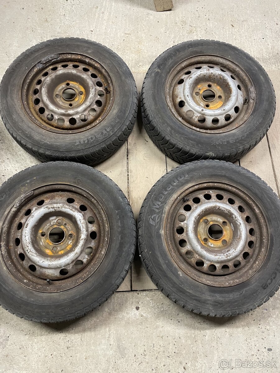 Predám pneumatiky na plechových diskoch 8ks, 175x70-R14, rozteč dier na diskoch 4x100mm, vhodné na autá napr. Opel, Peugeot, Ford. Na diskoch sú staršie pneumatiky, 3ks barum letné sú ako nové, 1ks nepoužiteľná pneumatika a 4ks Matador zimné staršie používané (dezén na 2ks 5mm a na dalších dvoch 4mm)