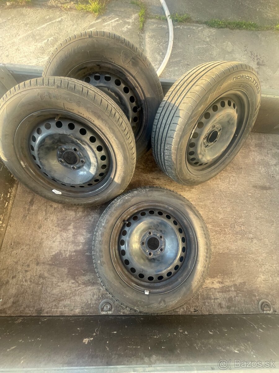 Na diskoch sú 3x pneu Firestone 205/55 r16 rv 3722 - 1x pneu Nokian 205/55 r16 rv 4922