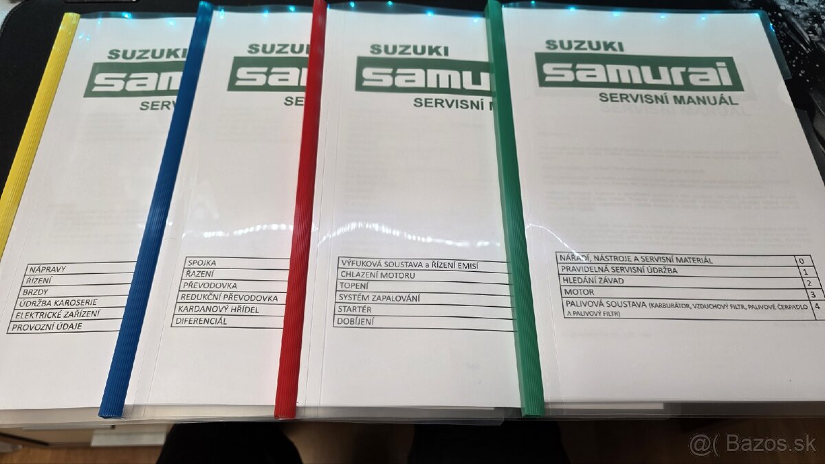 Predám servisný manual k vozidlu Suzuki Samurai 1.3. Návod je rozdelený na 4 časti, spolu majú vyše 400 strán textu a obrázkov. Možnosť poslať Packetou alebo poštou (+4€) alebo osobný odber.