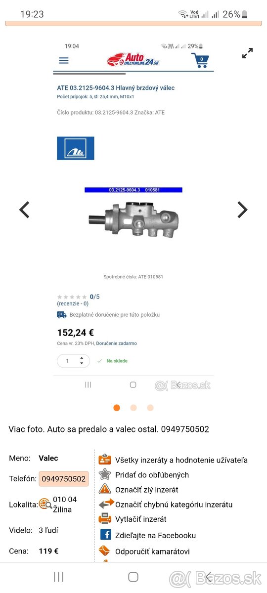 Posilovac brzd s hlavnym brzdovym valcom - [4.1. 2026]Predam posilnovac brzd s hlavnym brzdovym valcom