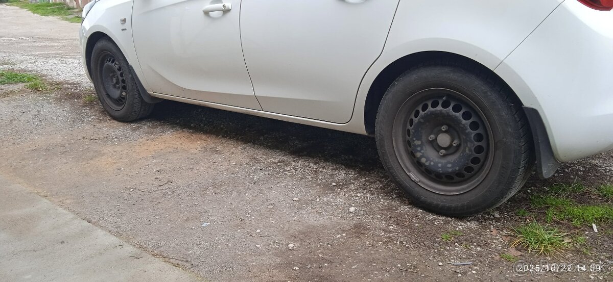 predam 4x zelezne disky zo zimnymi pneumatikami a plastovymi krytmi s logom opel , rozmer pneu 185x65 R15 T ,disky rozmer 6Jx15 ET 39,roztec medzi srobmi je 100mm,stredova diera 56,5mm,su v dobrom stave ,neposkodene ,rovne,pneumatiky su zimne malojazdene ,starsie ,ale dezen je este v dost dobrom stave ,kolesa su umyte osetrene,osobny odber priamo v banovciach .Cena 70€