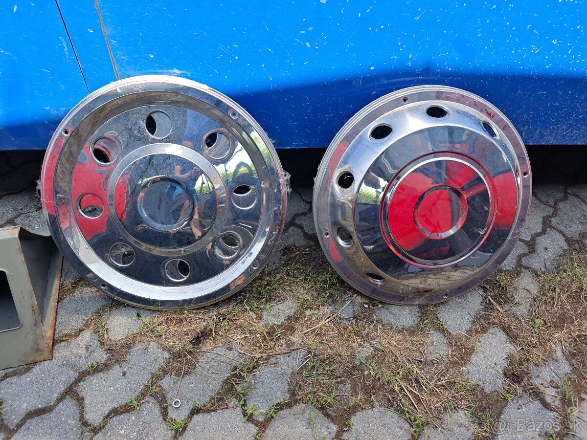 Predám málo jazdené puklice / kryty kolies na disky R19.5. Vhodné pre autobus alebo nákladné auto. Kryty sú kompletné so skrutkami a obrúčami na uchytenie.