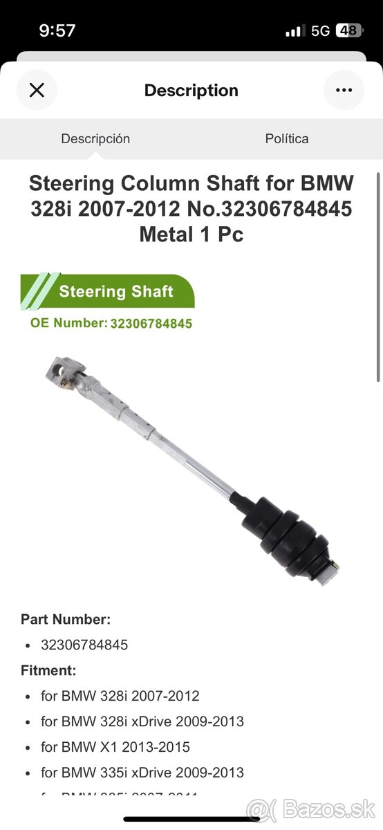 Predam tycku na riadenie s krizom riadenia, na BMW xdrive e90 e91 e92 e93 330xd 320xd 130kw 180kw po fl , pasuje aj na ine modely so servotronikom (servotronic) cislo dielu 32 30 6 780 684, 32306780864. Vo velmi dobrom stave su krize. Spodny kriz na riadenia