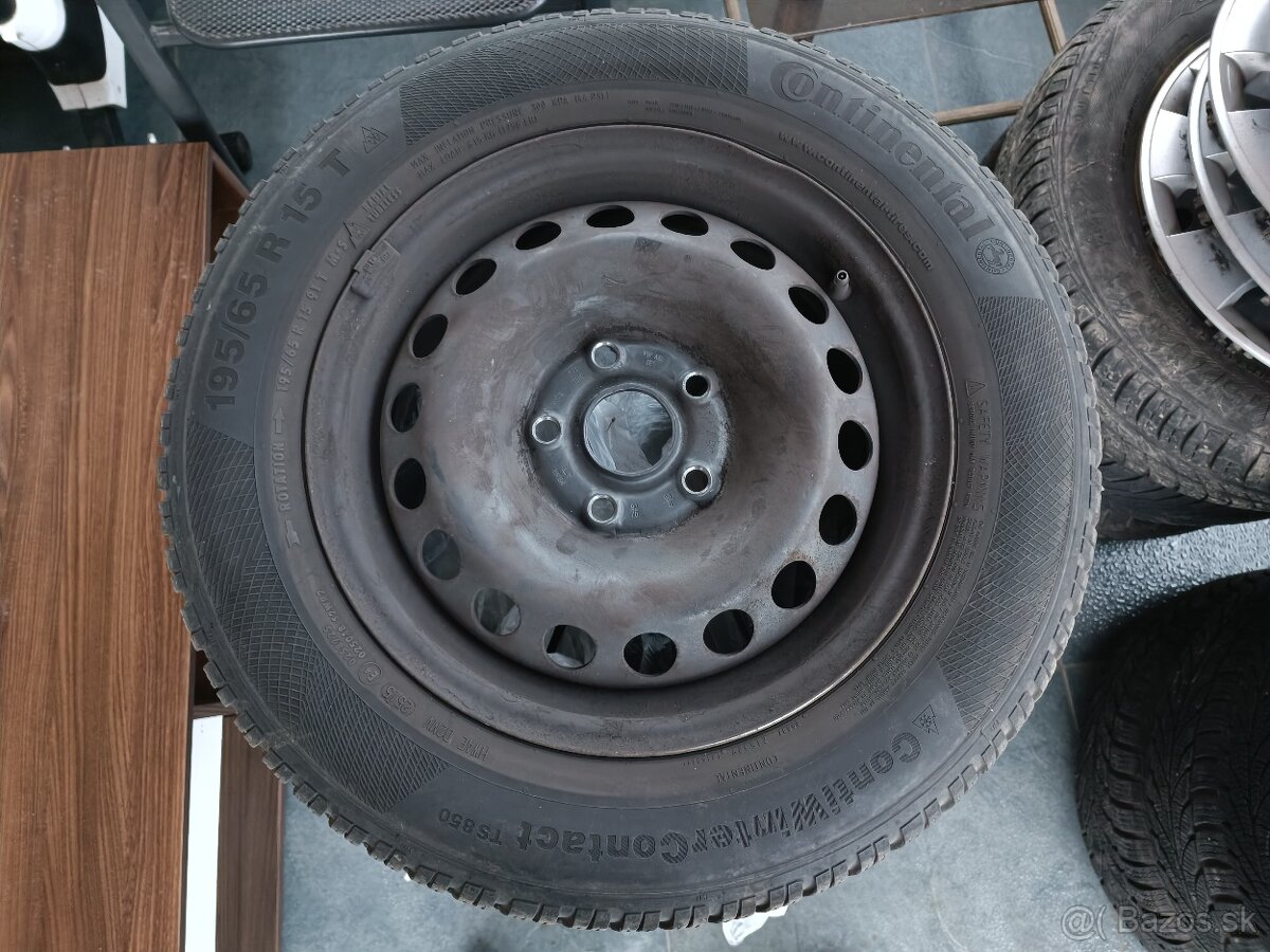 Plechove disky 5x112 r15 - [7.2. 2026]Predám plechové disky 5x112 R15,obuté zimné pneumatiky 195/65 R15 dezén 6,7mm,+ puklice