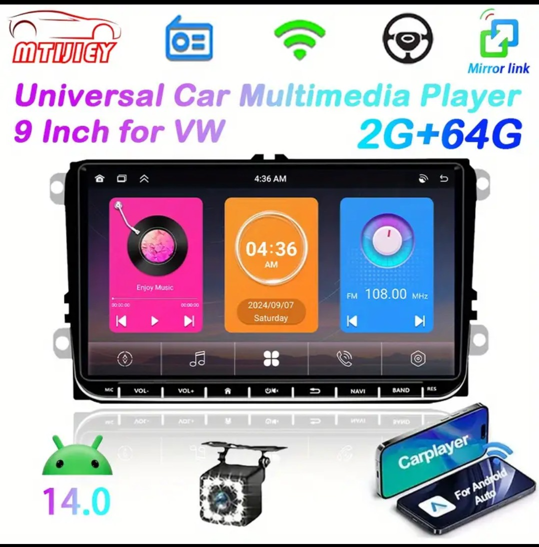 Predám nové autorádio s 9 palcovým dotykovým displayom, Volkswagen,Skoda Seat. Cúvacia kamera s nocnym videním v balíku. Môžem aj poslat(+5€).