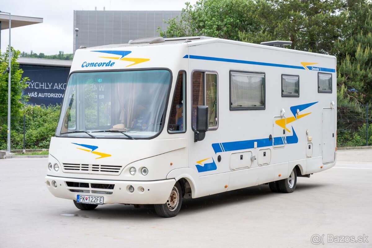 Predám nesmrteľný obytný automobil Concorde Charisma na podvozku Mercedes Benz 416 CDi, zadný náhon, max hmotnosť 5500kg (vodičák C), kategória M1. Rv 2000, 150.000km, podvozok ošetrovaný, minimálna korózia, zimné/letné pneu na diskoch, STK/EK platná, po servise, manuál, cúvacia kamera, klima vozidlová + nezávislá klima Thruma (potrebuje prípojku v kempe na Elektriku), AGM batéria na nadstavbu 890Ah, menič, nabíjačka, solár, markíza, chladnička s mrazákom na elektrinu/plyn, plynový sporák + rúra, kúrenie ALDE (na zimu aj na leto), 2 plynové flaše, vonajšia prípojka na plyn, dvojitá podlaha, 300l nádrž na pitnú vodu, 200l nádrž na šedú vodu, fekálna nádrž, splachovacie WC, sprcha, boiler plynový na teplú vodu, satelit, 2x TV, trezor, obrovská garáž, výsuvné elektricky ovládané stabilizačné nohy, ťažné do 3,5t, veľká posteľ vzadu 2,1m x 1,45m, druhá veľká postel nad kabínou 1,95m x 1,45m, + 2 spania pri rozložení matracu na sedení, 4 miesta na sedenie s bezp. pásmi, v TP zapísaných 6 miest na sedenie, úplne všetko funkčné, používané sporadicky, dovoz z nemecka v roku 2022, deti vyrástli tak už nie je využitý. Má to ďalších XY vychytávok, ale to už na mieste v prípade seriózneho záujmu ukážem a vysvetlím. Prosím len vážny záujem.