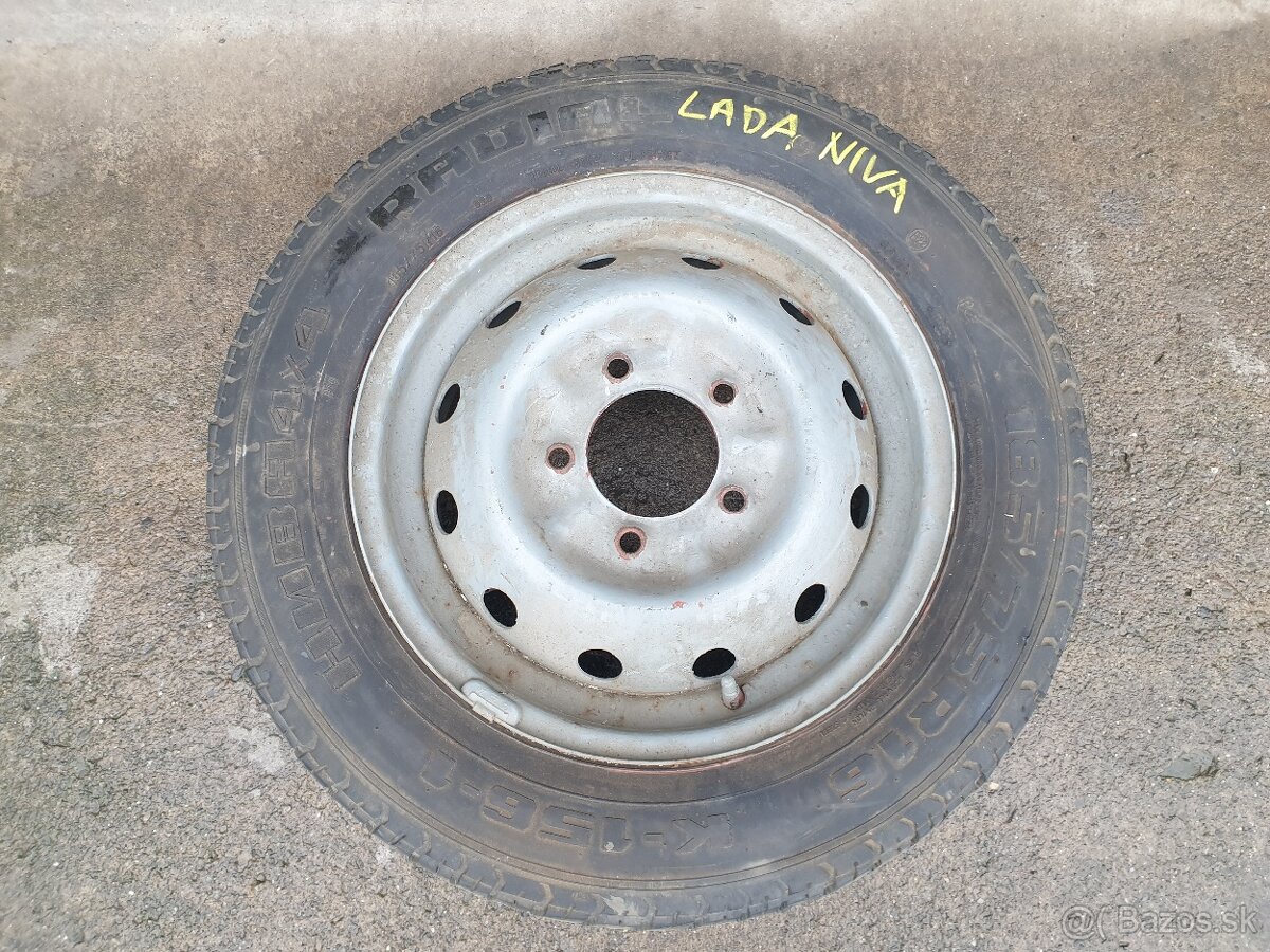 Predám na Lada Niva original rezervne koleso,päťdierove,rozteč 5x139,7.mm,ET35-36,stredová diera 110,1.mm,rozmer pneumatiky 185/75R16 K-155-1,4x4 RADIAL...cena za originalne rezervne koleso,ako na fotkách je 50€...koleso vieme poslať kurierom +15€,alebo osobný odber...volajte na 0903774846