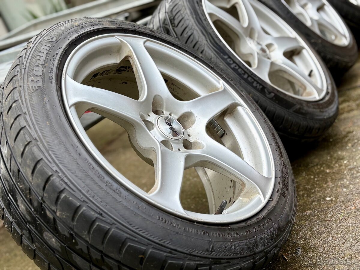 Predám sadu nemeckých diskov AEZ , 5x100 r17 sirka 8Jx17 H2 , et 32 , s letnými pneu matador hectora 205/50 r17 , stredova diera akt.vymedzovacie kružky 57,1 . Vhodné na golf 4 , octavia 1