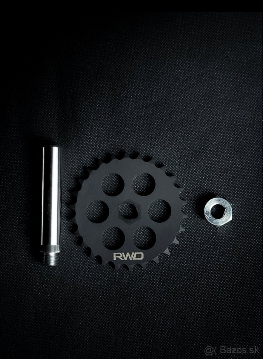 Dobrý deň mám na predaj komplet vystuženie osi olejového čerpadla spolu s customovým kolieskom od RWD Motorsport pre motory BMW M50, M52, M54.