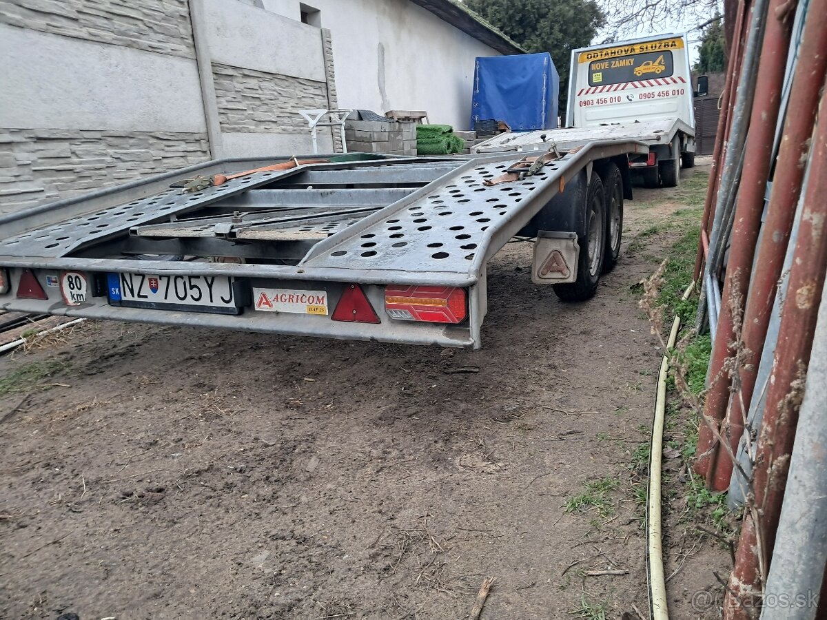 Agricom trailer,r.v.2007,nove gumy vsetky 4,nove led svetla,velmi pevne a zachovale neznicene,3 m najazdy pekne rovne,celkova hmotnost 2700kg,nosnost 2100kg.
