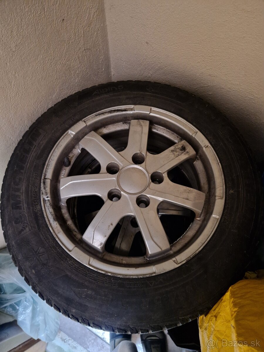Predám disky R15 obuté na zimných mischelin 195/65 dve gumy sfukujú vhodné na dojazd. Predám za symbolickú cenu lebo mi zavadzajú.