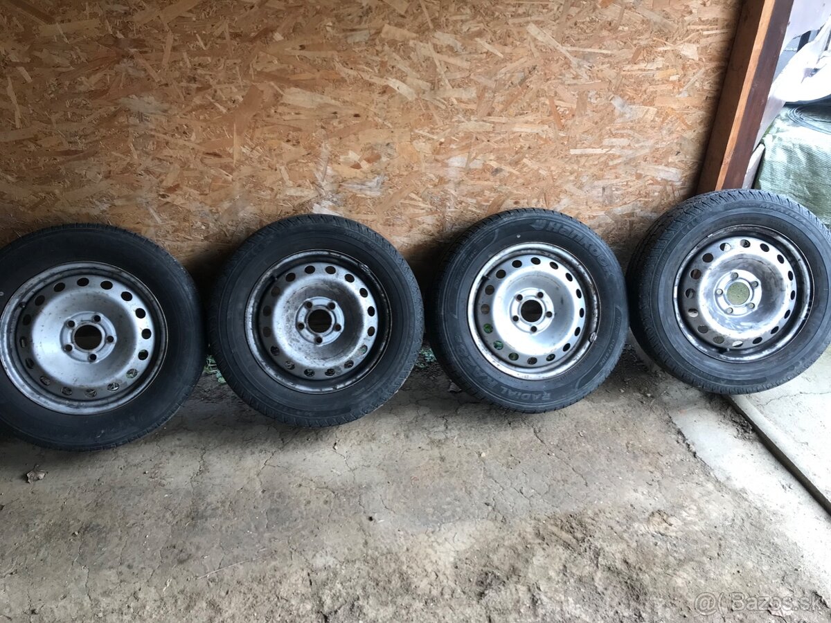 Predám komplekt sadu disky z pneu na Opel vivaro rozmer 205/65 r16 C sú to letné pneu 2ks matador a 2ks hankook dezén je 6-7mm Dot 018 skladované na suchu.. Opel vivaro Renault trafic..
