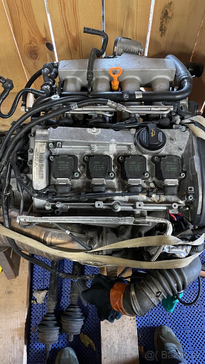 Motor je z Audi A6 1999 ,má 43000km od roku 2002 mi ležal v garáži .Kód motora je ANB a kód prevodovky EHV . Mám k nej aj poloosy.