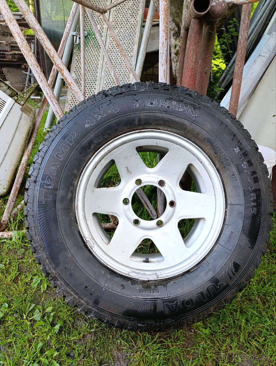 Predám koleso s rozmerom 6x139.7 a pneu 225/75 R15. Služila len ako rezerva. Vhodné na pajero, navara, patrol