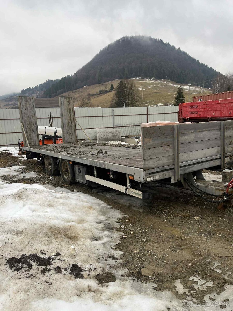 Predám Prives na prepravu stavebných strojov , celková 11t , nosnosť 8t papierovo , reálne viac , podval je na mechoch , dĺžka ložnej plochy 7,5m , ( John deere , traktor , bager , iveco , Scania , Volvo , Komatsu , Jcb , Takeuchi …)
