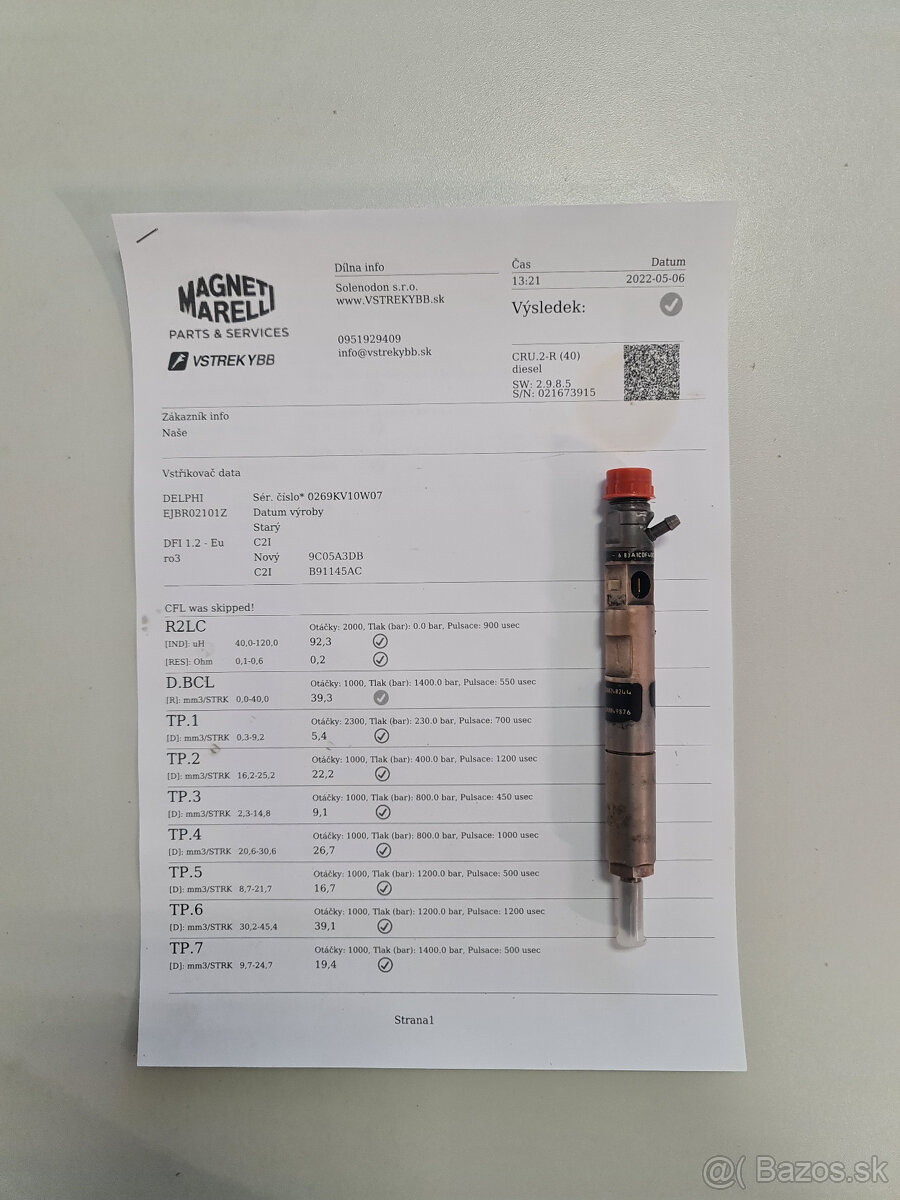 Predám vstrekovač 0445110057 2.0 HDI - [9.2. 2026]predám použité, otestované vstrekovače aj s protokolom zo skúšobnej stolice