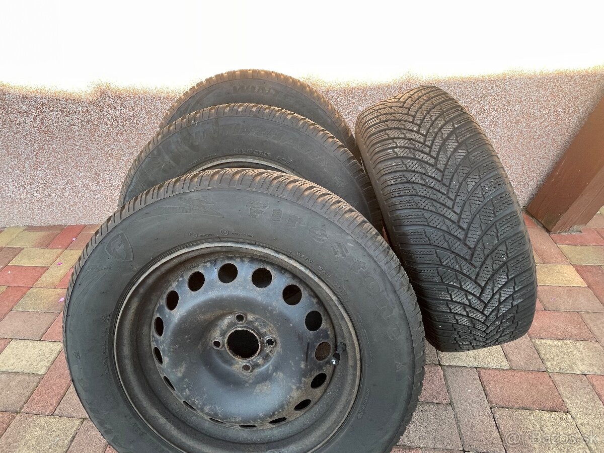 Predám kompletnú sadu 4 ks zimných pneumatík značky Firestone obutých na oceľových diskoch.