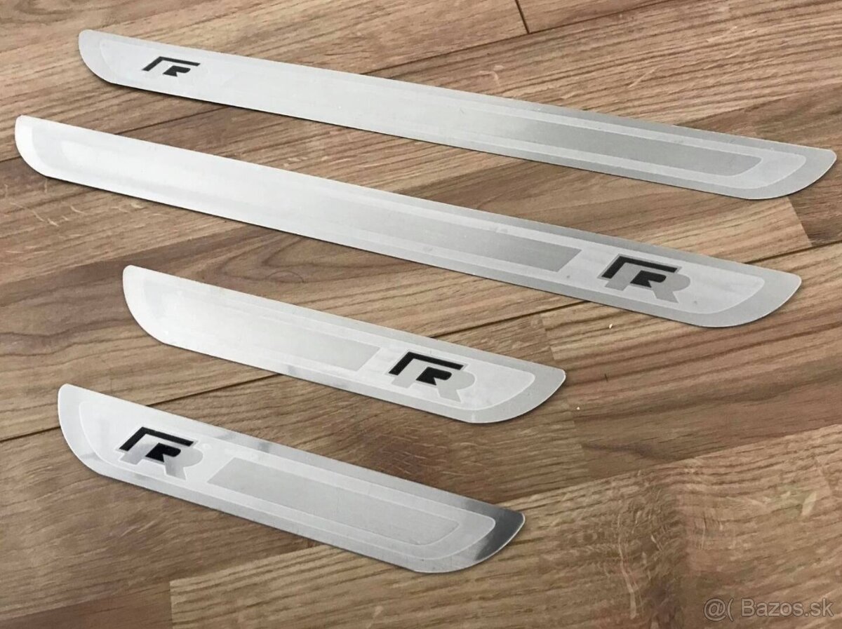 OCHRANNE DEKORACNE PRAHOVE LISTY - [8.1. 2026]Nerezove prahove listy samolepiace , sada 4 kusov , gravirovany napis VOLKSWAGEN POLO GOLF PASSAT TOURAN TIGUAN CC Rline ako na fotkách v inzeráte