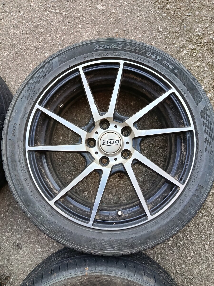 Predám elektrony 7Jx17H2 znacky dotz na elektronoch su pneu 225/45zr17 94y znacka pneu kumho dot 0223 hlbka dezenu je tak cca 2x3mm a 2x5mm elektróny boli na aute skoda octavia cena je 200€