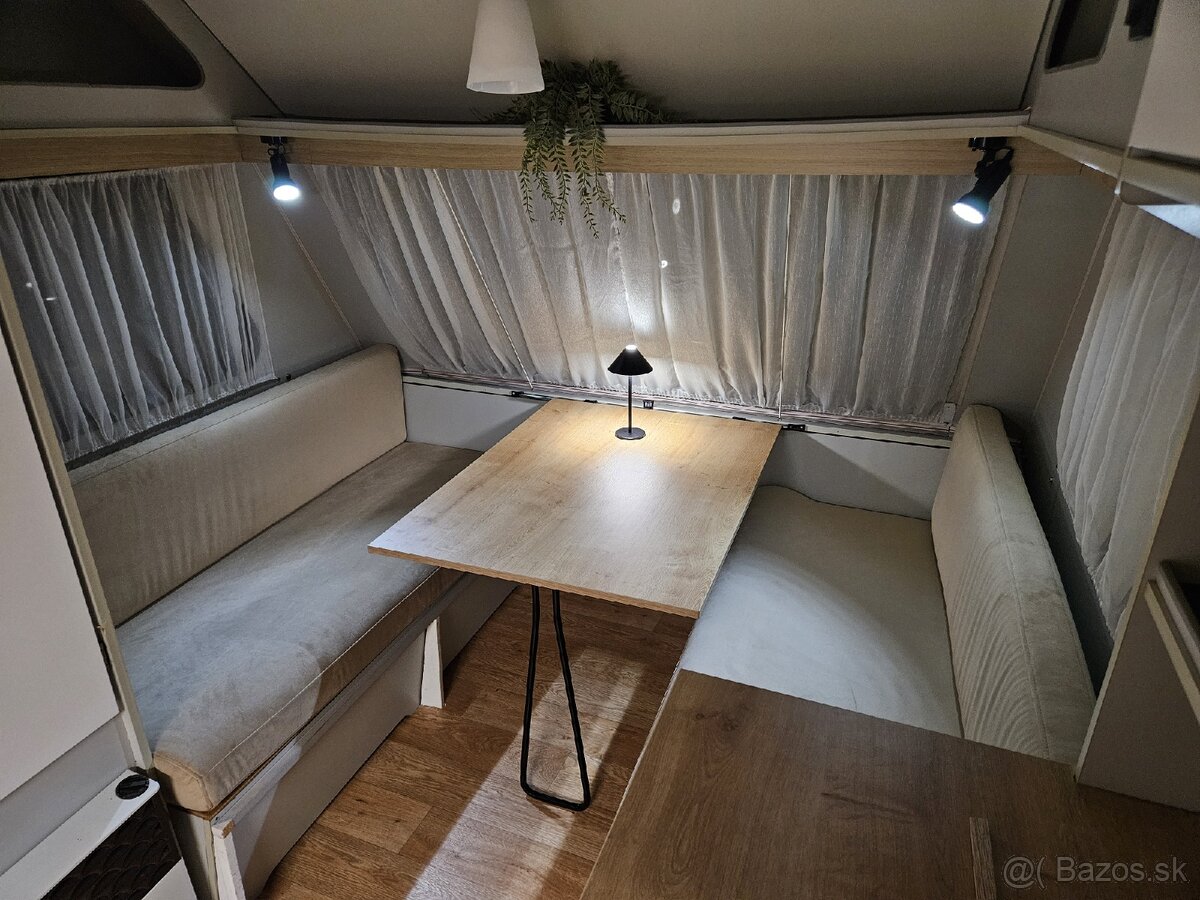 ERIBA Touring 3-miestny - [1.2. 2026]Predám tento krásny RETRO karavan značky EribaTouring ide o 3-miestny karavan so zdvihacou strechou pre väčší komfort v interiéri . Karavan je v perfektnom stave čo sa týka interiéru ale taktiež aj podvozkovo bez hrdze absolútne . Samozrejme na svoj vek ma zopár kozmetických vad ktoré ale nevedia pr ...