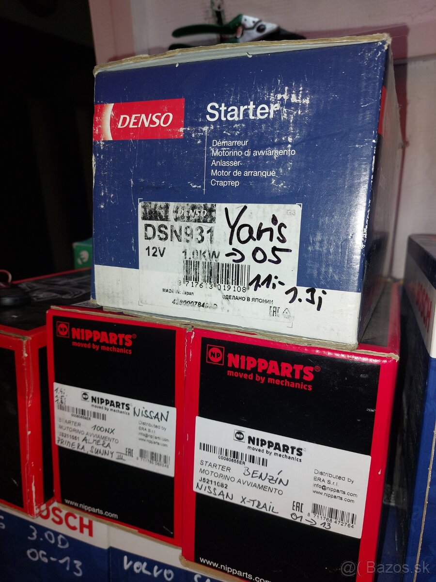 Predam štarter BOSCH: 0986025400 na AUDI ,5,6,7,8,Q5 za 100€. BOSCH: 0986017920 na OPEL ZAFIRA,FRONTERA A,ASTRA F.G.H,VECTRA,DAEWOO za 50€ BOSCH: VW,SKODA,SEAT,AUDI 1.2TSI za 80€ NIPPARTS J5211082 na NISSAN X-TRAIL za 50€ NIPPARTS J5211051 na NISSAN ALMERA,PRIMERA,SUNNY III za 50€ NIPPARTS N5212120 na TOYOTA AVENSIS,COROLLA,RAV4 2.2D za 90€. DENSO DSN931 na TOYOTA YARIS 1.1i-1.3i za 80€.