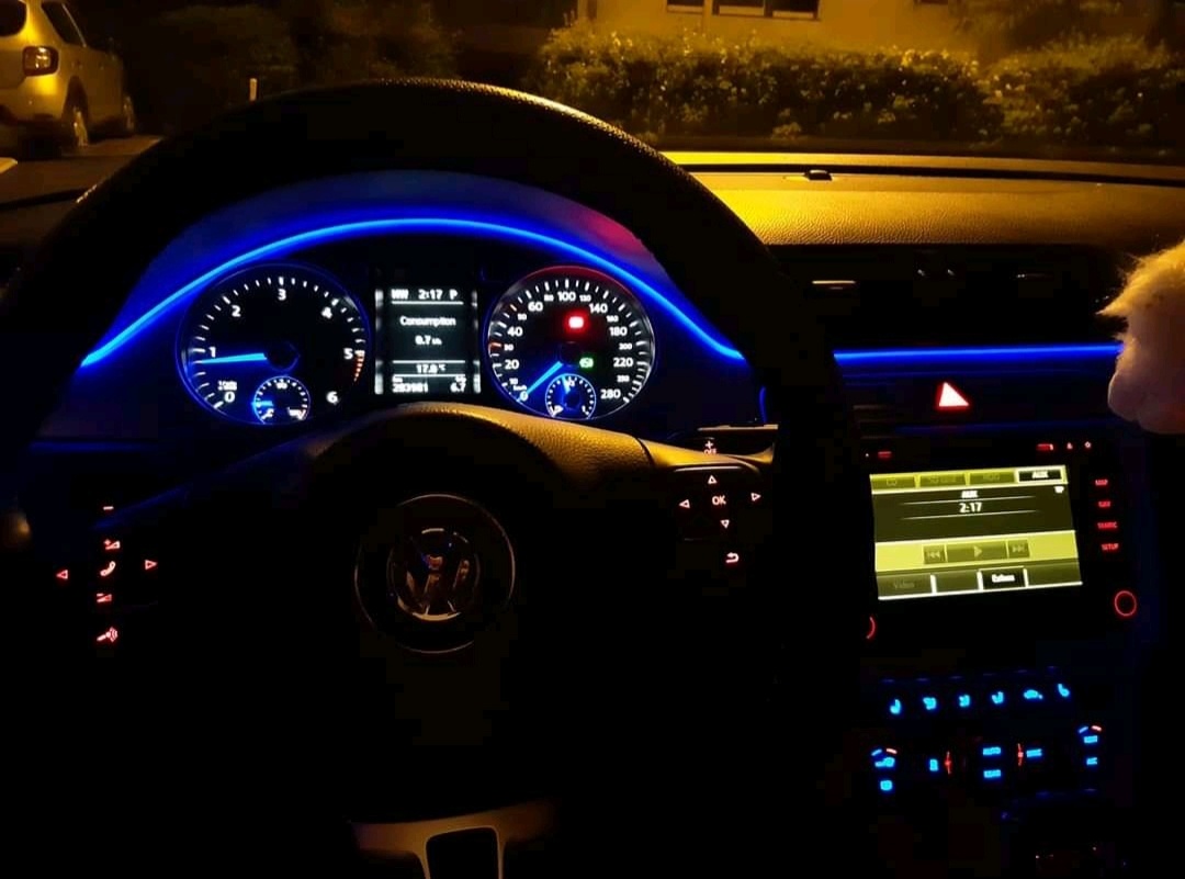 Led ambient pásy do prístrojovej dosky a dveri, napájaju sa na 12V resp. do zapaľovača.