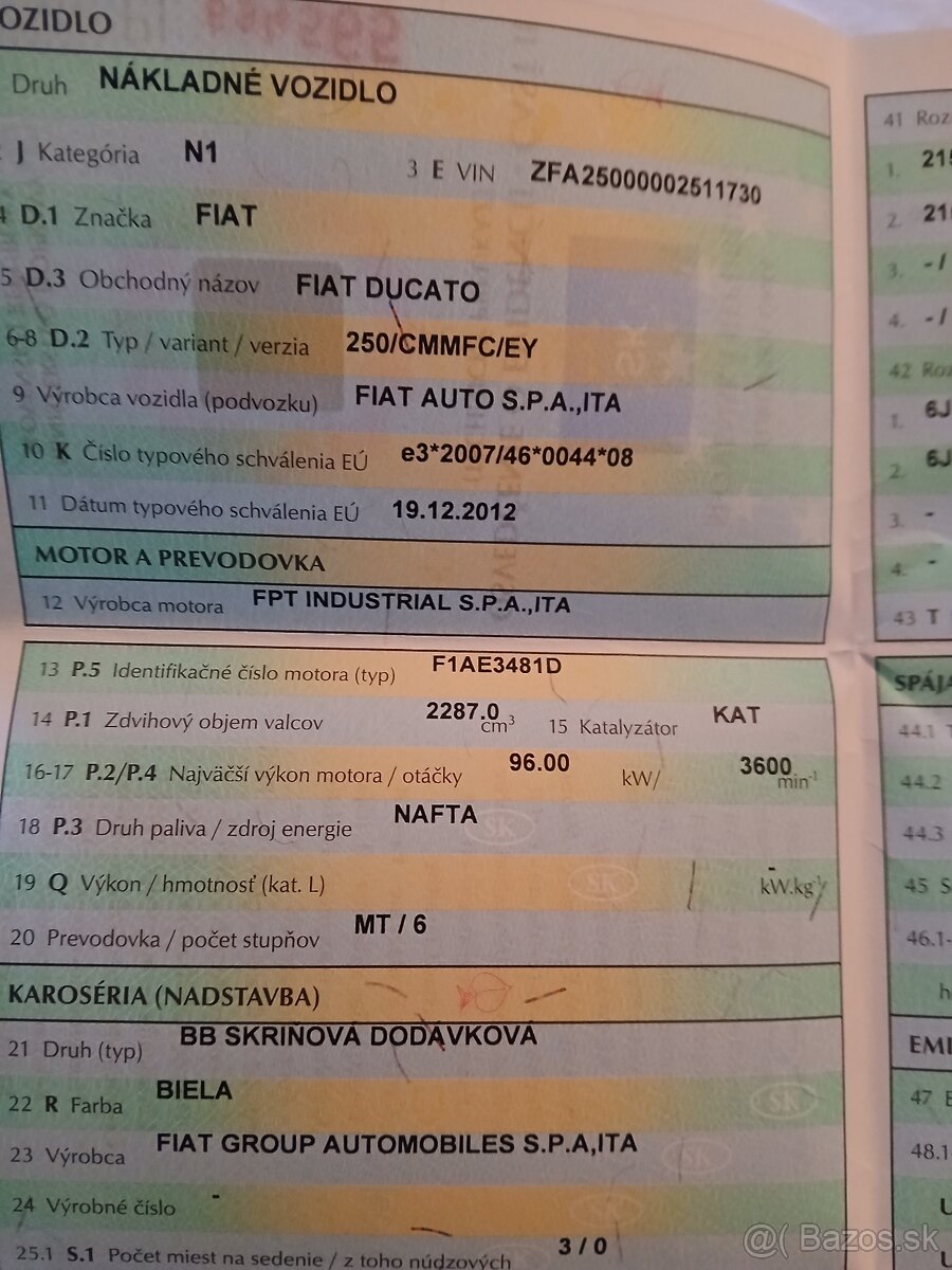 Predám fiat ducato 2.3 diesel 96kw,najazdené 220000 km,porucha motora.bez hrdze.