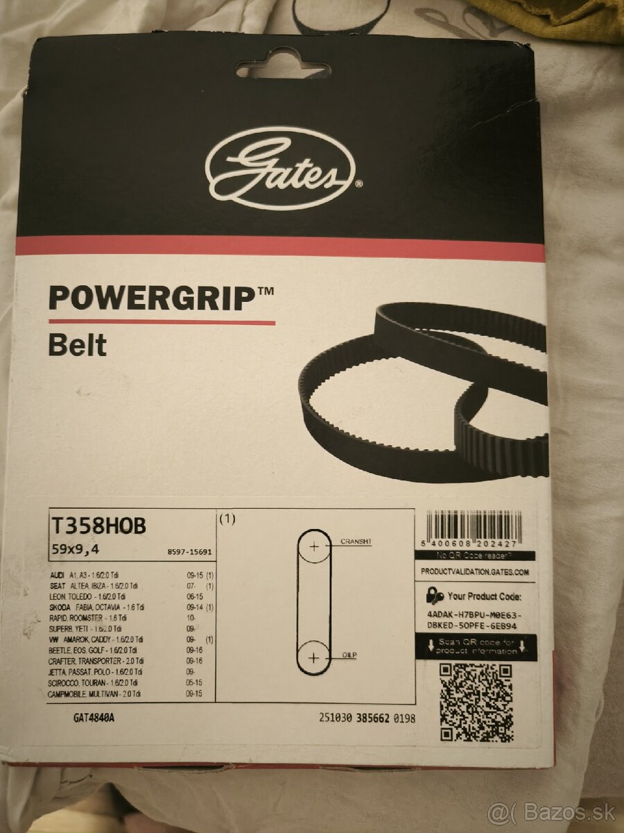 Remeň olejového čerpadla Gates T358 HOB, pasuje na VW, Škoda ,Seat Audi, 1.6 , 2.0 tdi